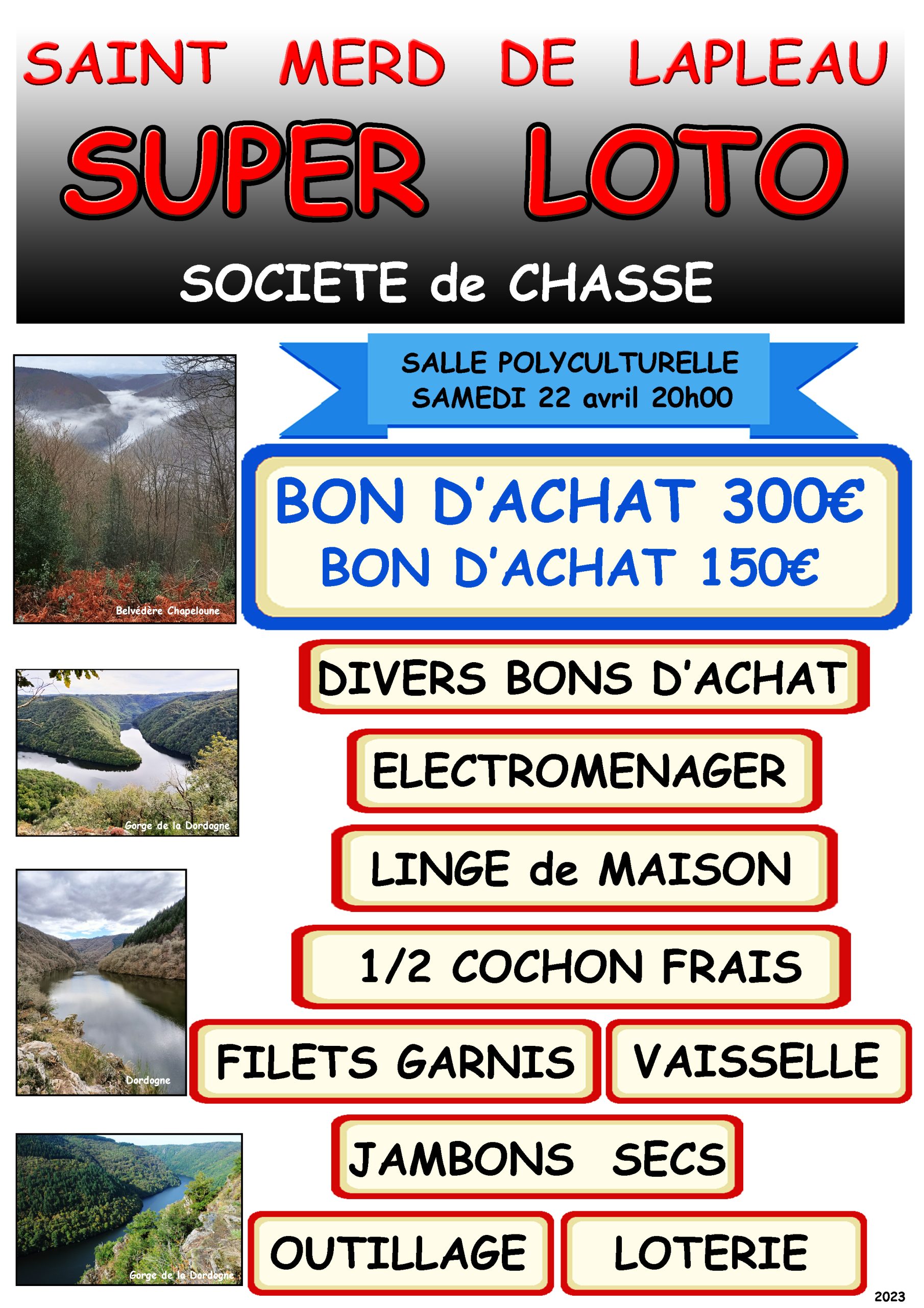 La société de chasse de Saint-Merd-de-Lapleau organise un Loto